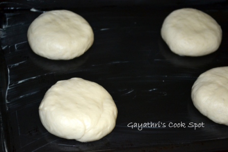 Raji, the second rise usually takes 30-40 minutes. Roll the balls and set aside. After 20 minutes, switch on oven. The balls will be ready by the time the oven is preheated for 15 minutes. Just place the tray inside. The buns will rise even after it goes into oven. So you will have nice soft crumbs…