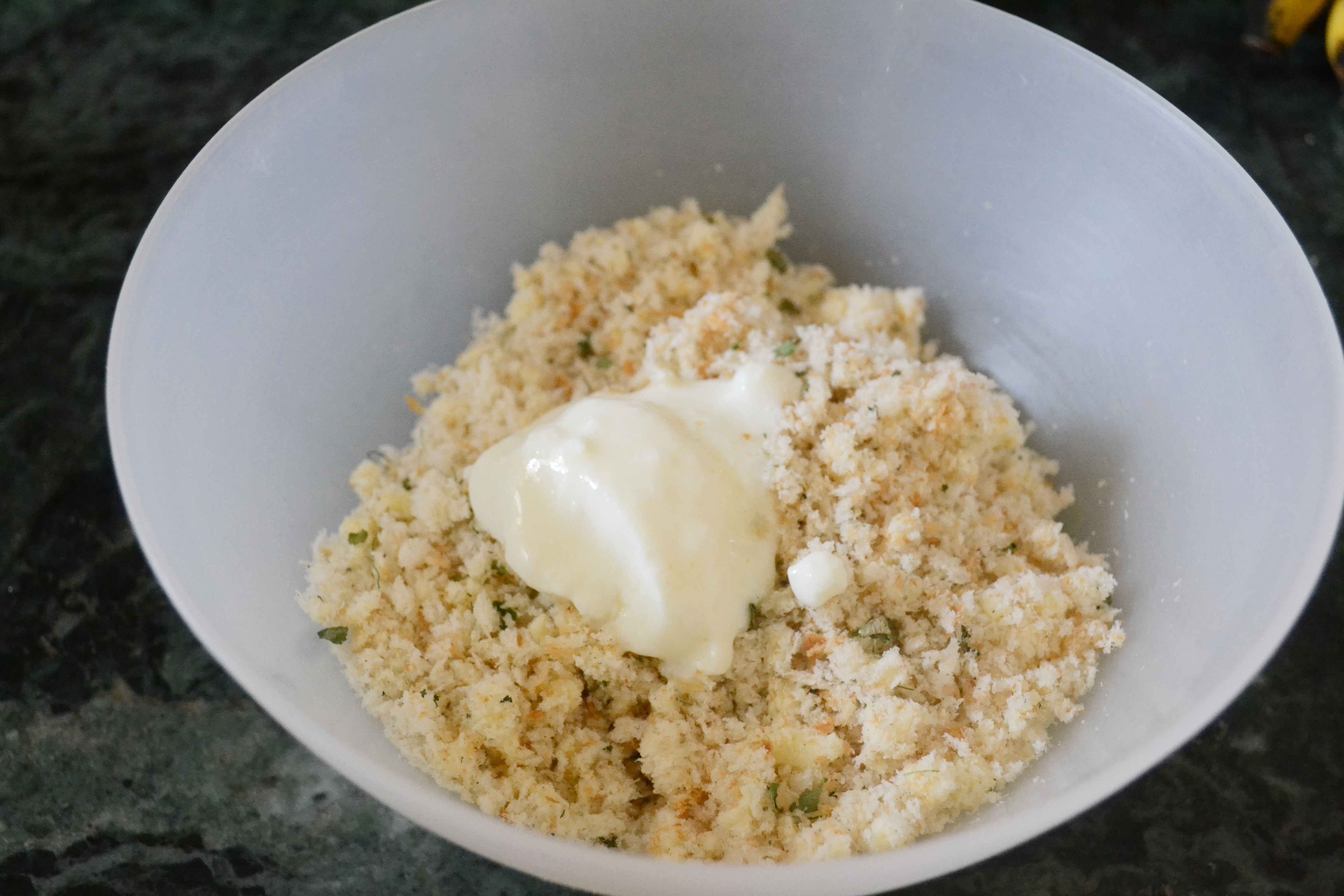 - In a bowl mix together the bread crumbs, crumbled paneer, salt, pepper, chat masala and kasuri methi.