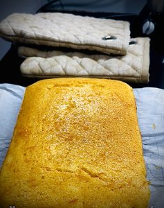 Once baked, allow the cake to cool for 20-30 minutes before adding the syrup. And cover the tin with cling film and set aside until it is cool to touch. This way the cake won’t dry out and will absorb the syrup evenly while cooling.