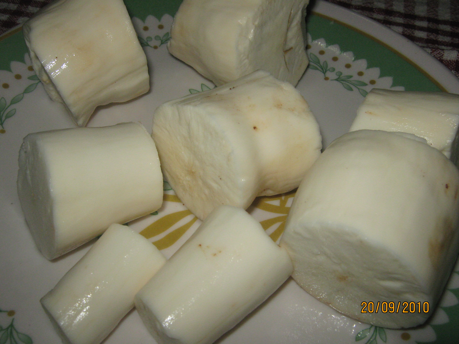 1.Cut the kappakilangu into small pieces and remove the skin.