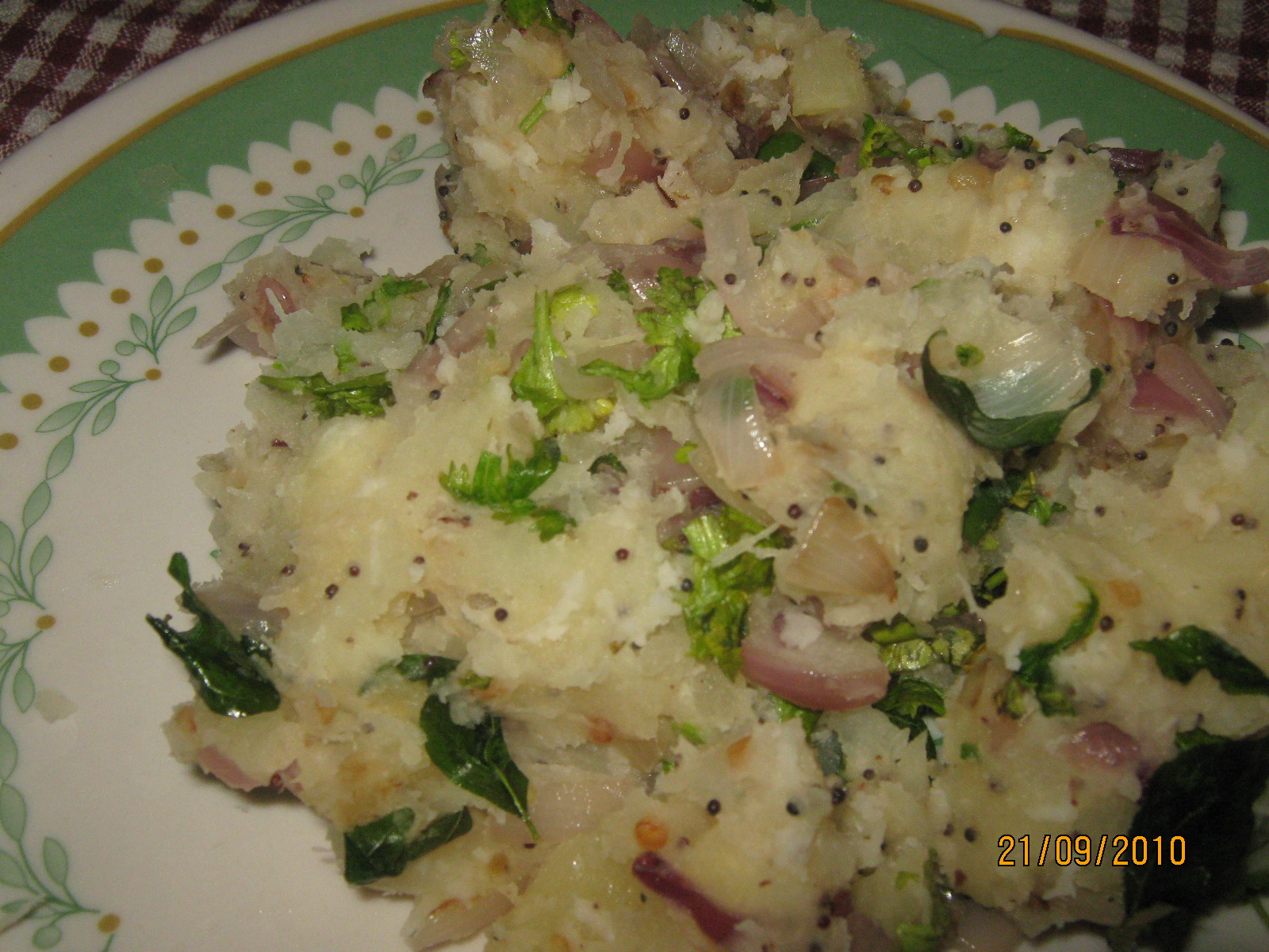 6. Add a pinch of salt and the mashed kappakilangu and mix well.