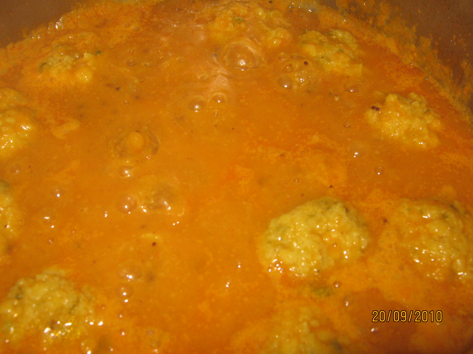 9. When it comes to boil add the dhal balls one by one.Do not mix the gravy until the balls start floating.