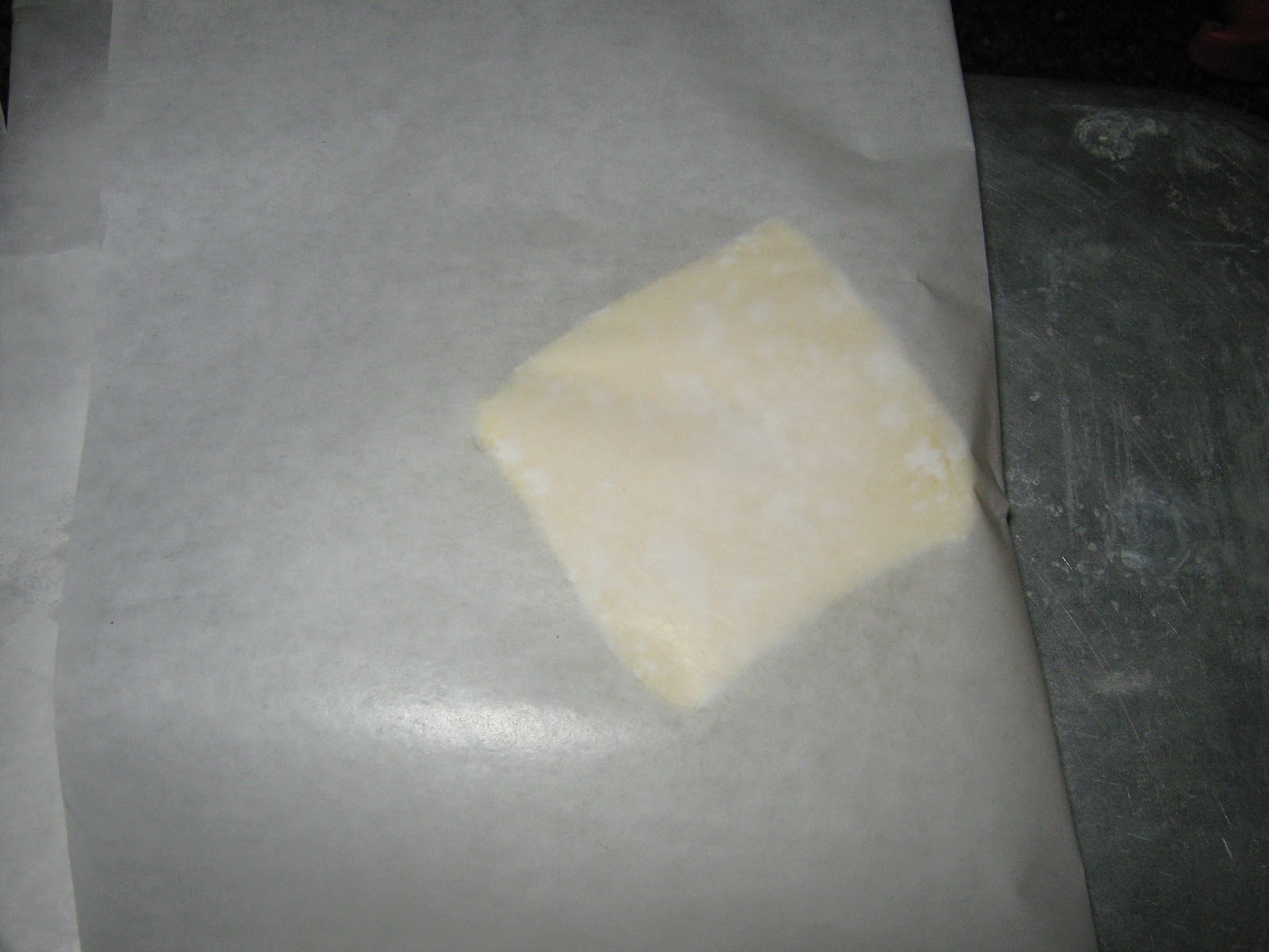 - Meanwhile take cold butter on a butter paper. Sprinkle flour and fold the butter paper on the butter.