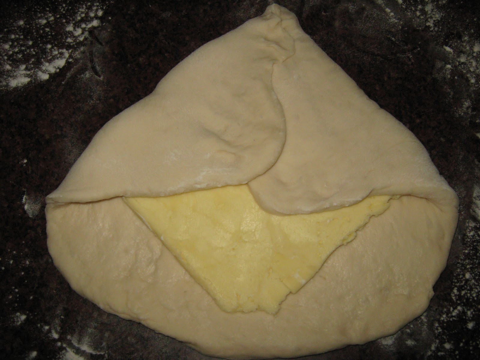 - Keep the cold butter in the middle and fold the dough over the butter and cover it completely.(follow photo tutorial)