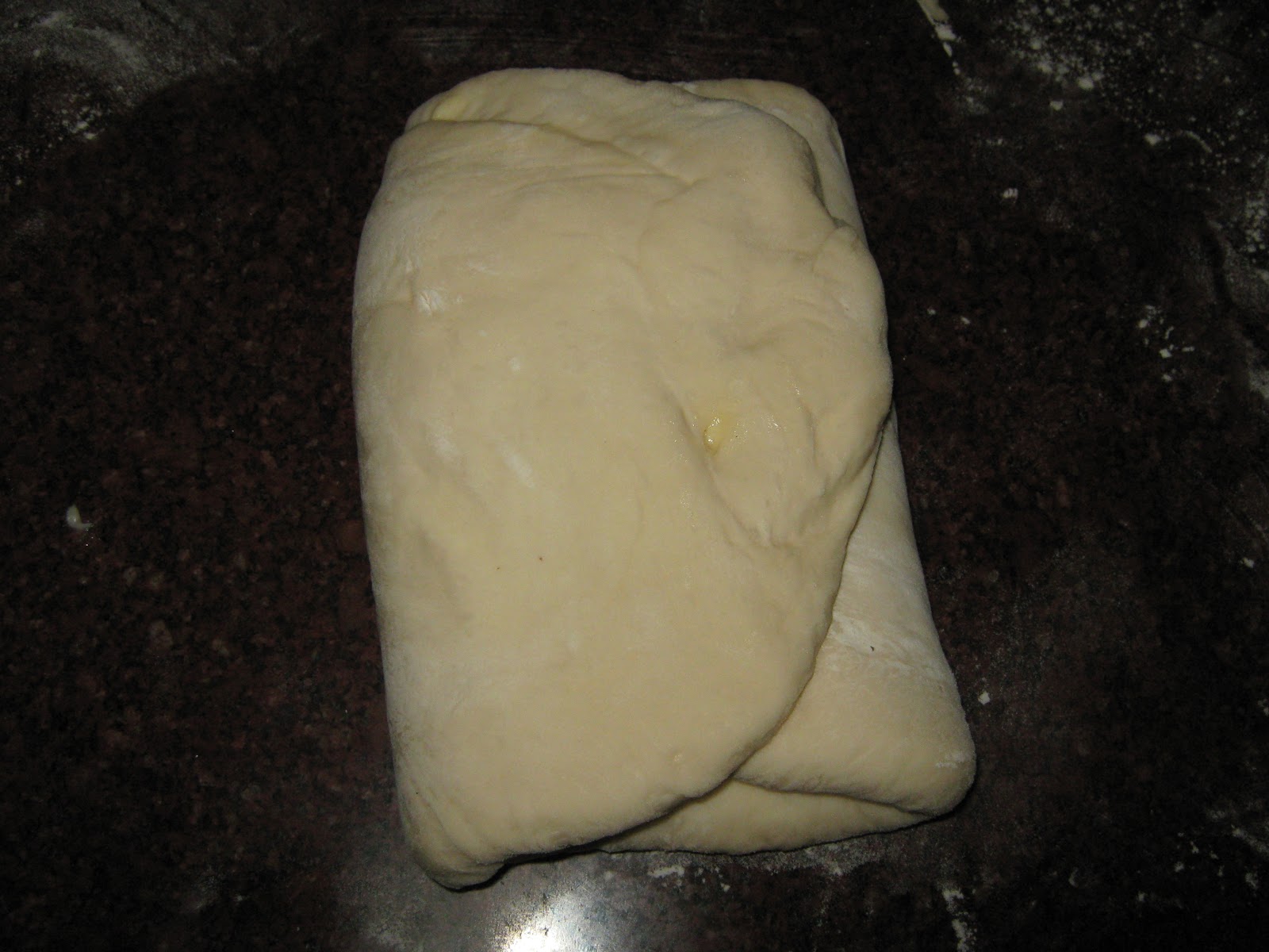 - Roll the stiff dough again into a rectangle and fold it again into 3 layers. Refrigerate again for 30 minutes.