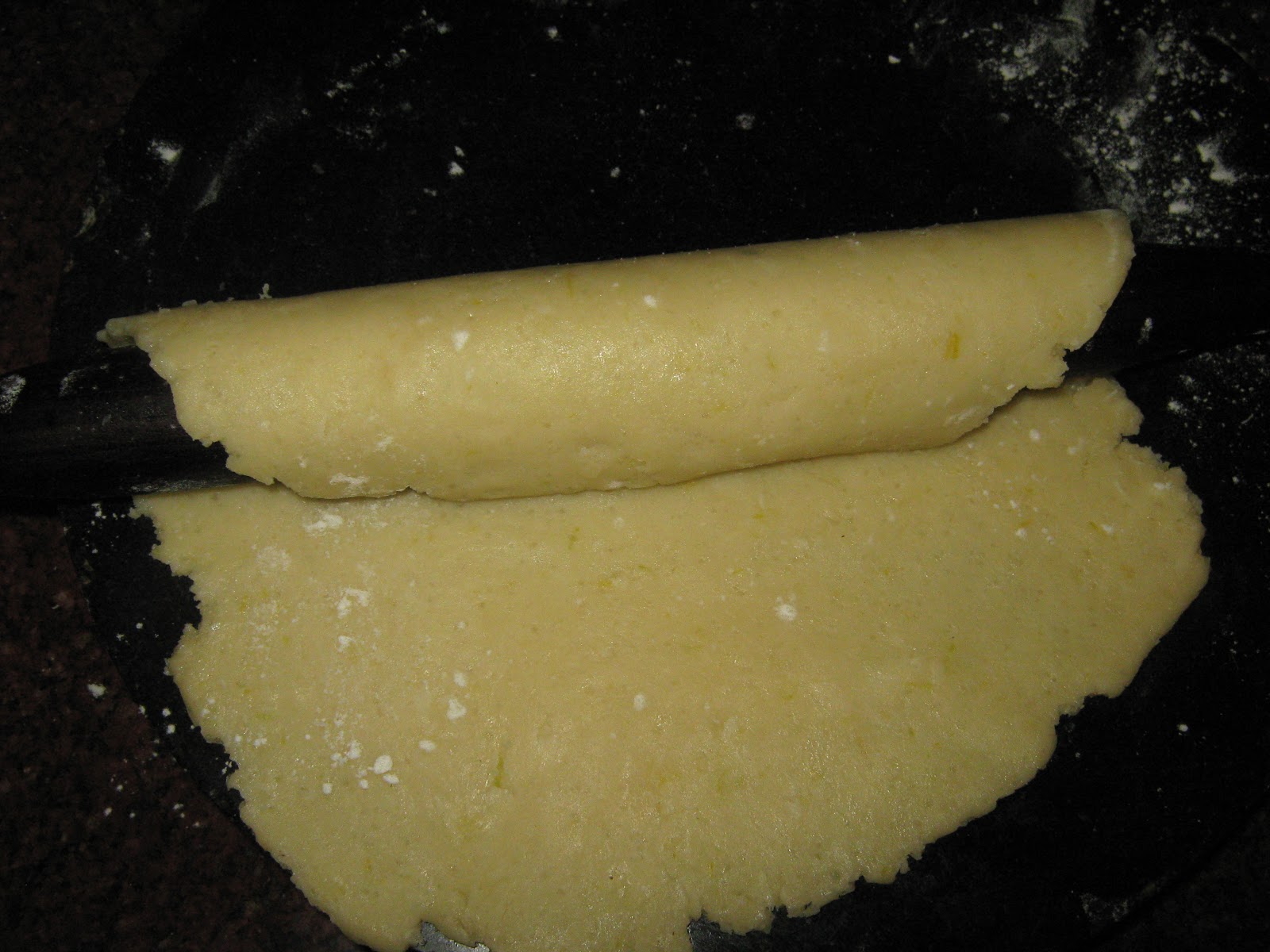 - Roll out the chilled pasta frolla into a circle three inches bigger than your pan.