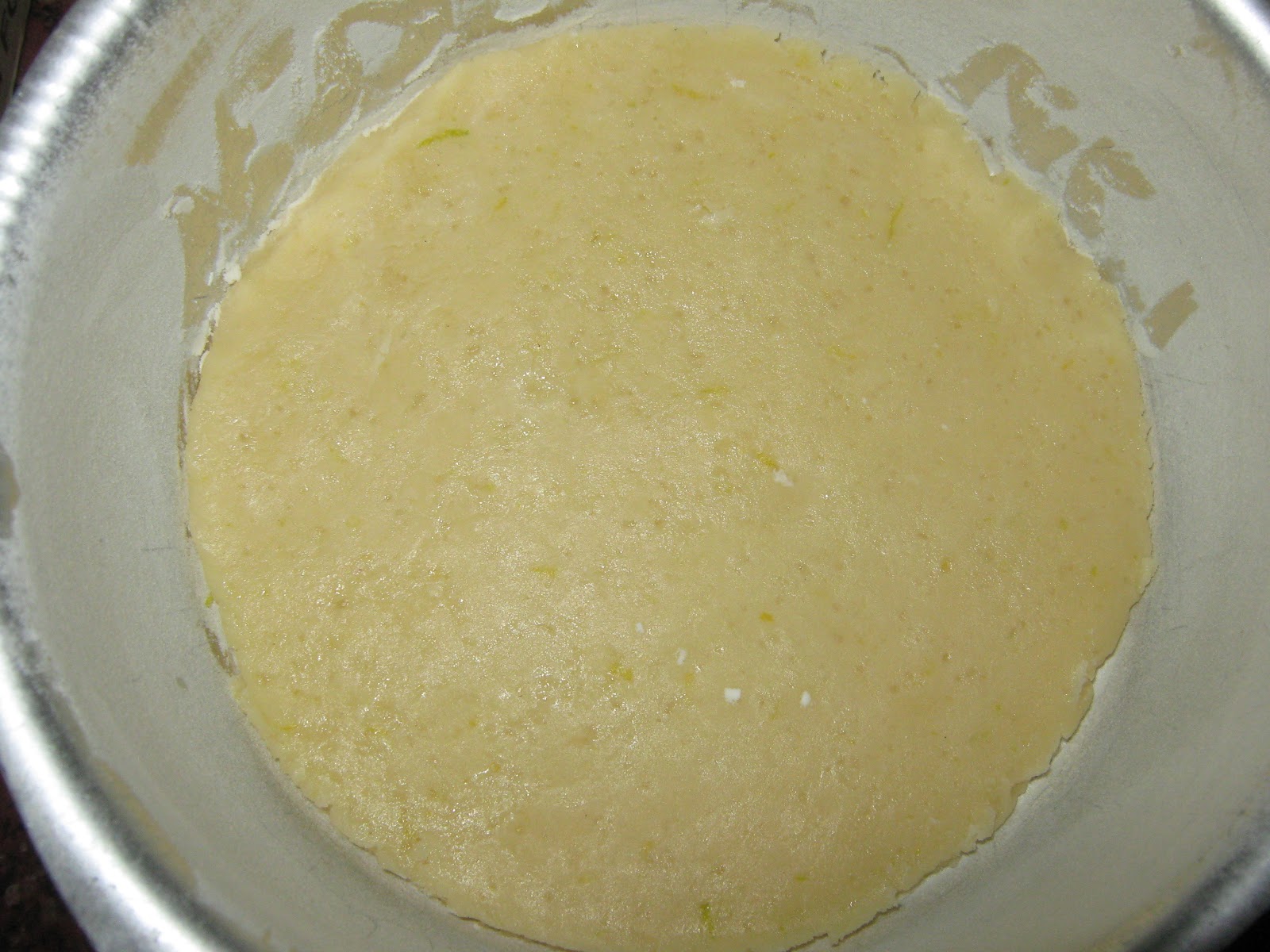 - Grease and dust a cake pan.