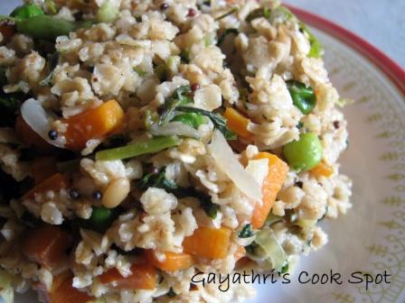 Ingredients: Ponni raw rice ( pacharisi)-1 cup Mochai payaru-1cup Pearl Onions-8 Grated coconut-1/4cup Turmeric powder-1/4tsp Salt-to taste Mustard and urad dhal-1tsp Curry leaves-5 Oil-1tsp