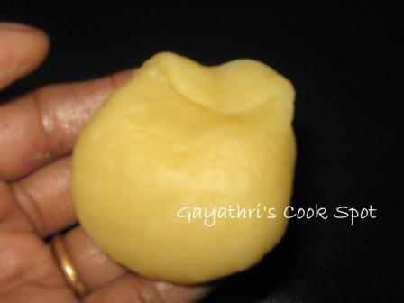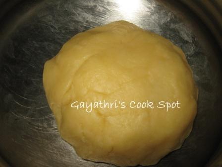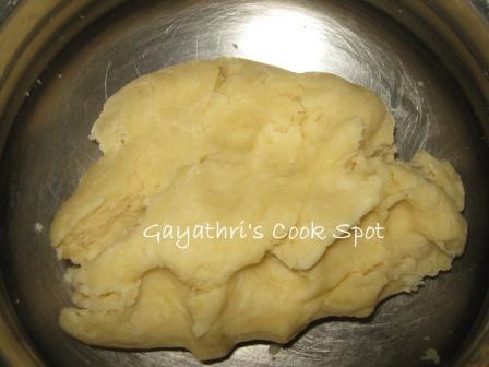 4. Add water to make it a soft dough. If needed add a little more water. Knead it for 10minutes to make it smooth.