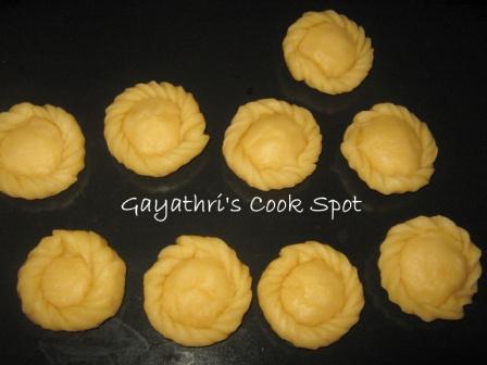 16. Place them on a greased plate. They will be sticky when hot. But on cooling the syrup becomes firm and it will not stick.