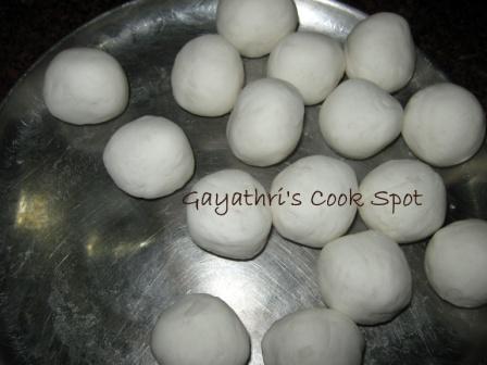 8. When cool, knead it to soft dough. Pinch small amount of the dough and roll into balls.