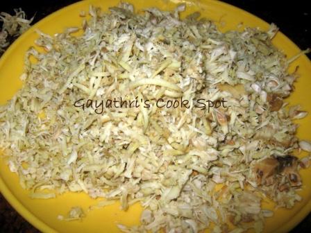 7. Take 1 1/2cups of the grated jack fruit for the stir fry preparation.