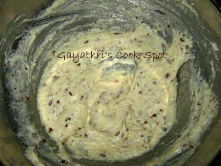 Procedure: 1. Mash bananas with a fork and add baking soda. 2. Mix until fluffy. 3. Mix flax meal and milk and set it aside for 5 minutes. 4. Cream sugar and butter until fluffy. Add the flax meal mixture and beat well. 5. Add banana mixture to the butter mixture and mix well with a wooden spoon. 6. Add flour, salt and cardamom powder. 7. Add this flour mixture to the butter mixture and fold in the flour. 8. Add cashew and mix. 9. Preheat oven to 180C. 10. Line a baking tray with aluminium foil and lightly grease it. 11. Drop spoon full of the cookie dough 1″ apart on the tray. Smoothen the top with the back of the spoon. 12. Bake for 11-15minutes. The top will not change colour. Look out for the base colour. When it is golden brown, remove from oven and cool on wire rack. The cookies are so soft when hot, but will firm up when cool. 13. Enjoy with a cup of coffee.