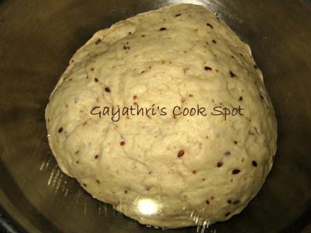 Ingredients: Warm Milk-2/3cup Instant Yeast/ Active Dry Yeast-1 1/4tsp Butter-1tbs Sugar-1/3cup Flax Meal-1tbs(mixed with 3tbs warm water) Flour-2 1/2cups Cardamom Powder- 1/4tsp Salt-1/2tsp For Topping: Ghee-1/4cup Sugar-1/2cup Cardamom Powder-2tsp