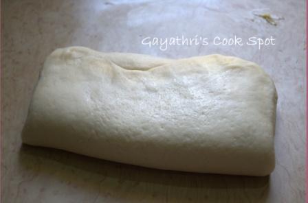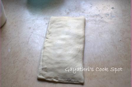 7. Gently place the dough on the counter and spread it with fingers to a rectangle of 20cm*30cm.