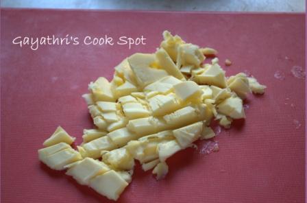 11. Meanwhile prepare the butter. The butter should be extremely cold. Cut it into small chunks.