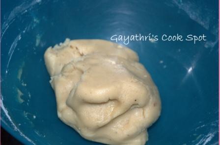 6. Boil the syrup until it reaches soft ball consistency. If you drop a little syrup in water, it should not get dissolved. When rolled with finger it should be able to hold shape. This is the correct consistency.