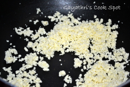 4. Heat 1/2tsp oil and saute the crumbled paneer until nice golden brown. Keep it aside.