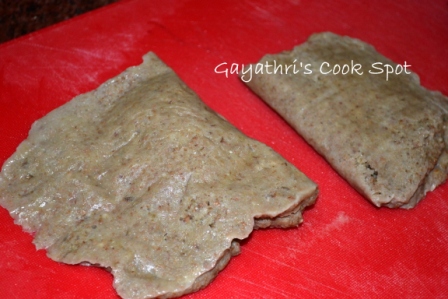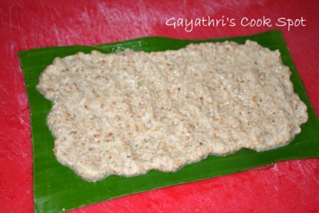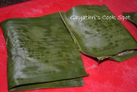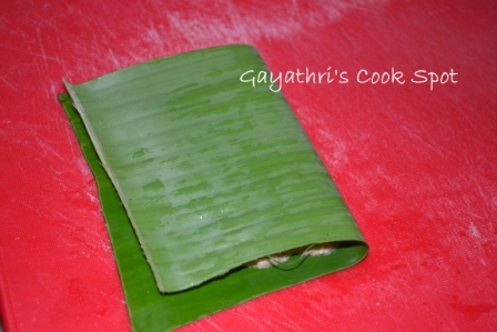 Achi suggested using latcha ketta keerai for steam cooking. As I couldn’t get those, I used banana leaf.