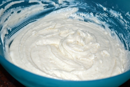 2. Beat together butter and curd. Add the coconut milk and blend well.