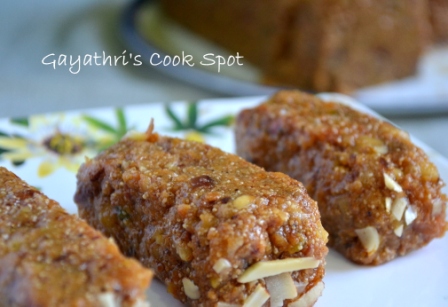 My sister-in-law is a Sindhi and she once mentioned about Majun. I searched for the recipe online but couldn’t get it. Even she didn’t know the recipe. When Srivalli announced Majun for this month’s ICC, I was so happy. Vaishali had given the complete recipe. At last my search is over. This is a very rich sweet usually relished as breakfast during winter. Moms also prepare this for their daughters after marriage. Thank you so much Vaishali for the delicious recipe. I halved the recipe given by Vaishali and got a square tin full of Majun. I sent half to my hubby’s office and the other half went into my fridge. My daughter liked it a lot. So I am planning to give her a piece daily after she comes from school. This is a power packed sweet as it contains a lot of dry fruits. There could not be a better way to give kids all the goodness of dry fruits.