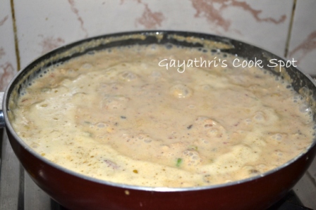 6. The mixture will start thickening. Be careful because this splutters a lot.