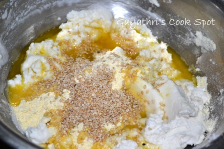 For The Murukku: Murukku Flour-2cups Roasted Gram-1/2cup Butter-1/4cup Salt-to taste White Sesame Seeds-3tbs Oil-For Deep Frying
