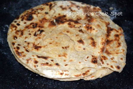 11. Cook both sides of the paratha on a tawa, drizzling little oil on the sides.