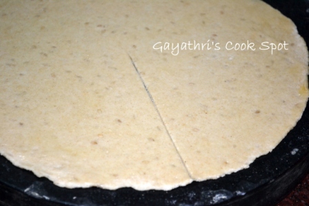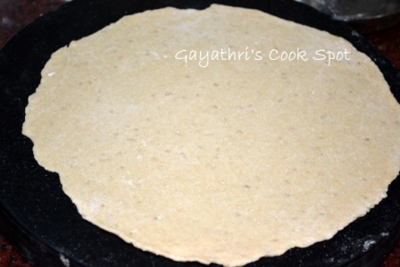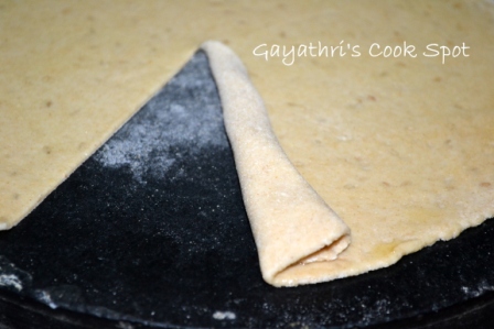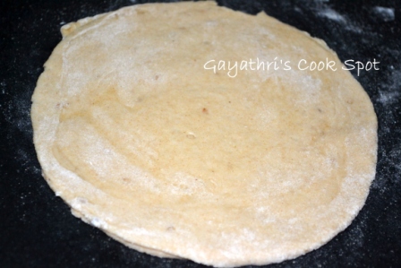 As promised yesterday i am giving you the recipe for layered till parathas. The dough is very easy to prepare and the layering is very interesting. It uses less oil than the usual paratha and the wheat flour makes it healthier and nutritious. I saw the method of layering in Rhodes across Caribbean which is aired in Fox History Channel. I tried it the next day and it came out so nice. So whenever I want to treat my hubby with a special treat, I go for it.
