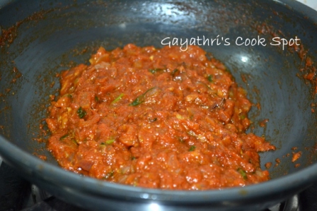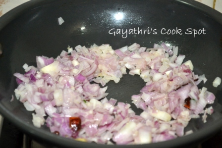 4. Add the ginger garlic paste and saute till the raw smell is gone.