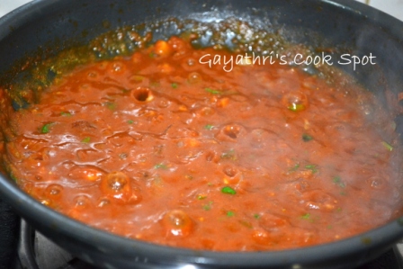 5. Add the tomato paste along with the red chilly, kashmiri red chilly and garam masala powders.
