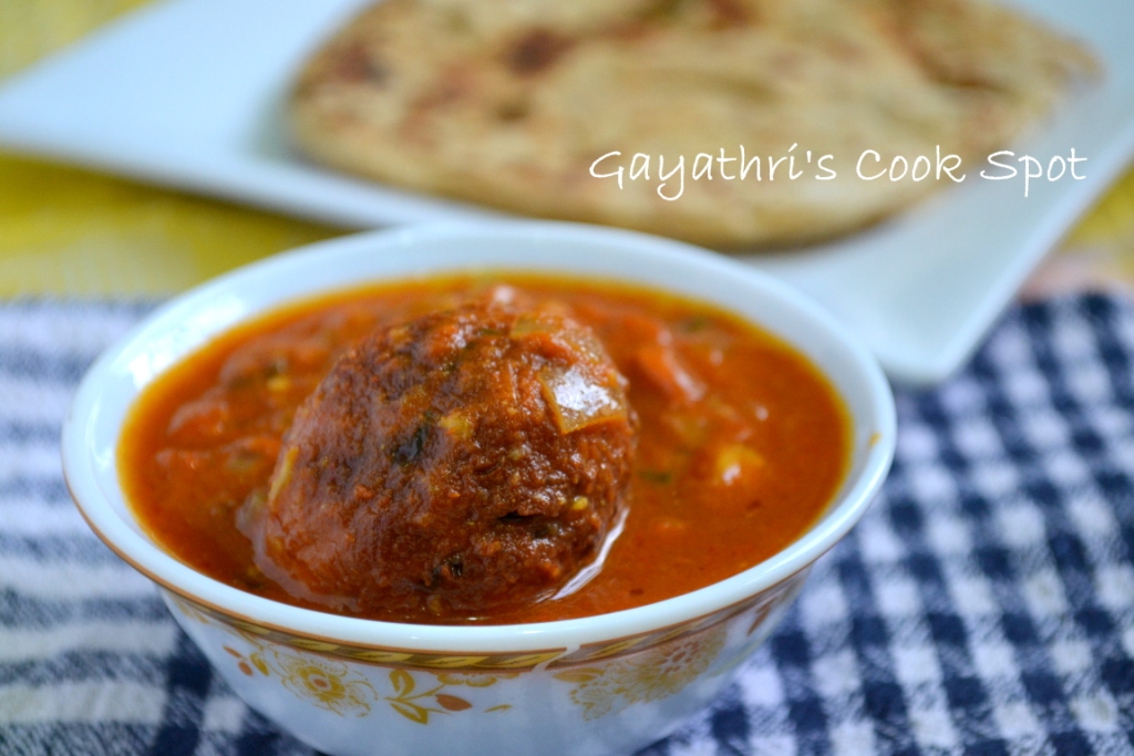 For yesterday’s dinner I prepared this delicious curry to go with till parathas (the recipe comes tomorrow). I am a great fan of paneer, but usually avoid it in the name of dieting. Yesterday I made some paneer and was thinking of using up in a nice gravy. I didn’t follow any particular recipe for this curry. Just added the ingredients according to my mind while preparing. The result was fabulous. The gravy was so rich and the koftas were absolutely delicious. I used half quantity home prepared red chilly powder and half quantity of Kashmiri red chilly powder. Kashmiri red chilly powder gives a nice colour to the gravy. That is why the gravy looks so colourful. The till parantha was a great combination for this curry. Hubby liked it so much.