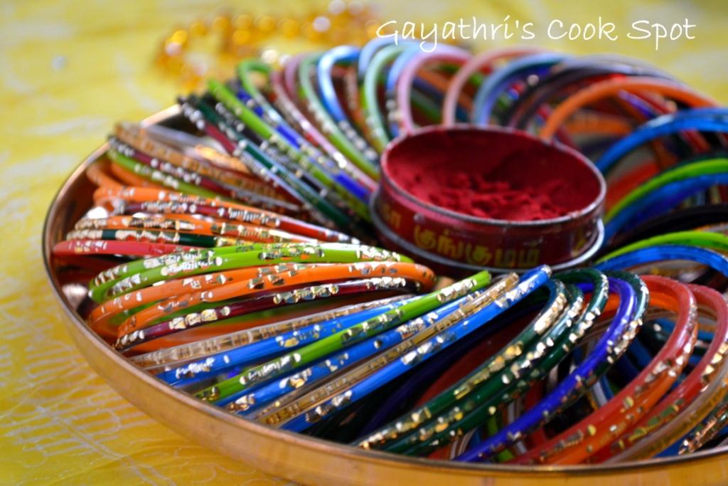 These are the bangles used on my Valaikappu. It is usually conducted on 7th or 9th month. The mom to be will wear it until delivery. It is kind of cute to look at thoses bangles. They also prepare 7or9 types of variety rice for the function.