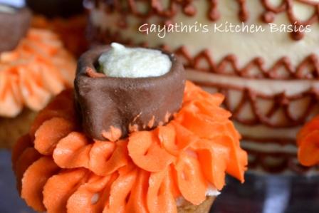 I placed the diyas in the middle of a cup cake decorated with butter cream.