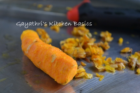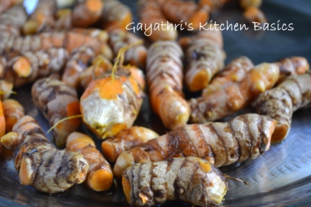 Fresh Turmeric is available during Pongal festival. I came to know that fresh turmeric can be used to prepare pickle only after I started blogging. Last year I prepared pickle and this year I prepared thokku with this fresh turmeric. Turmeric is a root and it is related to ginger. The cleaning process is the major part in preparing it for any recipe. As this is the root, it will be fully encrusted in mud. And there will be lots of tiny roots dangling from the turmeric.
