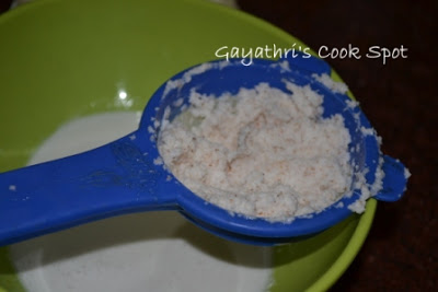 Grind it in a mixer grinder adding enough water to a fine paste. Add 1/2 a cup of water to the ground paste and mix well.