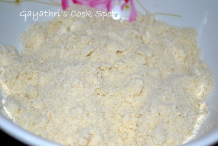 1. Grind rava to make it finer. Add salt and 2tsp ghee and rub it well to make it crumbly.