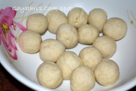 Mix salt and ghee to rava and rub until it crumbles