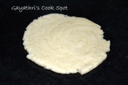 Apply ghee paste on the disc and keep another disc slightly offset on the first disc. Stack 5 discs.