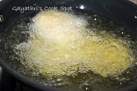 14. Keep flame medium and deep fry the discs until crisp.