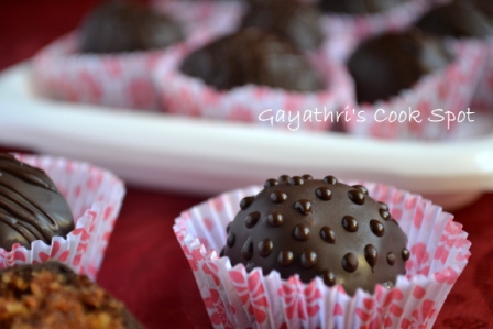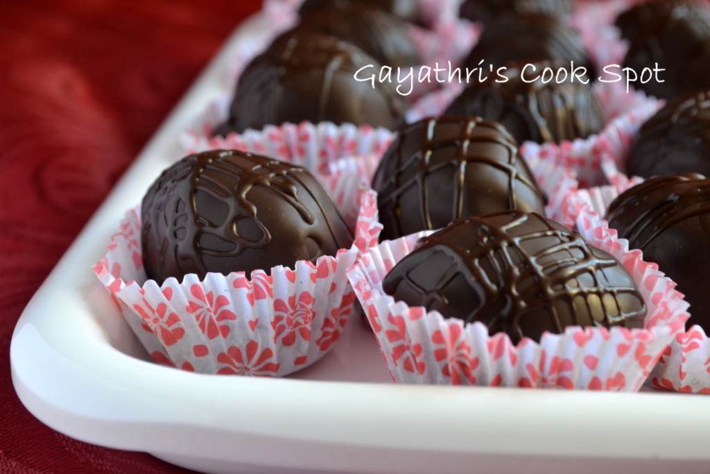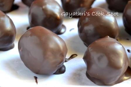 While making 3D cakes, you get a lot of cake crumbs and pieces. While I prepared the Pongal Pot Cake, there was a lot of cake and butter cream left over after the completion of the cake. The next day holidays started and I couldn’t do any thing with it. I just placed the cake and the crumbs in a zip lock bag and refrigerated it. Today, I took them out in the morning and brought them back to room temperature. Preparing cake pops is quite interesting. My daughter is a great fan of these chocolate coated beauties. I prepared cake crumbs by grinding the cake pieces in mixer grinder, added the remaining icing to it and made a crumbly dough. Then I shaped it into balls, refrigerated them, coated them with chocolate and decorated with melted chocolate. My daughter came home to find these delicious cuties and was so happy. She couldn’t stop munching it. I have to stop her from polishing the dish off.