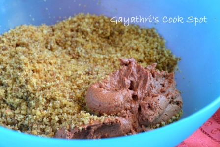 2. For 2cups of crumbs, add 1/4cup of butter cream icing.