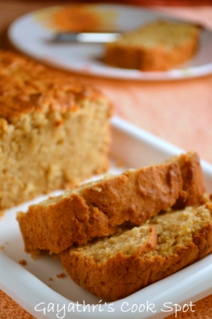 For this month’s Daring Bakers Challenge, Lis of La Mia Cucina, asked us to go creative with our baking skills. She wanted us to create quick breads. I have posted a recipe for Eggless Pumpkin and honey bread. Quick breads are breads which doesn’t need kneading or rising. The leavening agent used in quick breads are baking powder, baking soda or eggs. I love the honey flavour in breads. So I prepared another quick bread with honey. It also has wheat flour and banana. The combined aroma of honey and banana filled the house while the bread was in oven. When tasted, the combination of flavours worked well. The bread was mildly sweet, soft, moist and fluffy. The crust was beautiful and i am so happy for the result. I tried out eggless version.