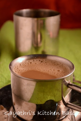 Who can resist filter coffee? Before instant coffee, filter coffee very famous. When instant coffee was introduced, the advertisement said that it is tasty as the filter coffee. My mom used to prepare coffee powder at home. I remember her buying coffee beans and roasting them. The aroma of fresh coffee would fill the house. She will then grind it to a fine powder and add it with chicory to make home made filter coffee powder. Nowadays even she has started drinking instant coffee. During my marriage, she gave me a coffee filter but I never used it. After seeing some posts on filter coffee, I decided to give it a try. The decoction should be very thick. My mom used to prepare two decoctions. As my father is a fan of black coffee, the second decoction goes into his coffee. Never boil the decoction to reheat it. Always boil water and place the required quantity of decoction in a small bowl inside the water to heat it. Add hot milk and sugar and give it a nice stir and serve hot.
