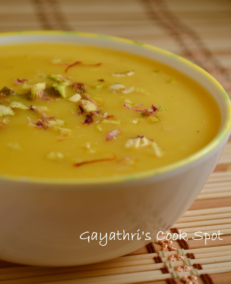 Payasam or Kheer is a famous Indian dessert. Paasi paruppu payasam is usually serve in marriages and ceremonies. I added some vermicelli to the payasam to give it a twist. I also combined milk and coconut milk for a different flavour. Doesn’t this look nice. It was creamy and rich. Addition of nuts made it a bit crunchy.