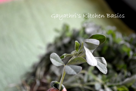 Methi / Fenugreek leaves known as vendhaya keerai in Tamil. This is a nutritious green and is best for feeding mothers. Drinking 1 cup of fenugreek leaves tea a day is said to relieve the pain caused by arthritis (Wikipedia). The seeds are used as spice and the leaves are used in many Indian recipes such as curries, gravies, pulaos and parathas. Preparing greens for cooking is the hardest part. While preparing methi leaves, remove the leaves with a little stalk and discard the other parts. This can be stored in zip lock bags and refrigerated up to a week. The leaves will remain fresh.