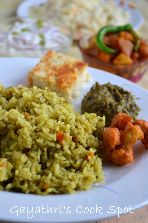 Coriander based pulao with lots of vegetables