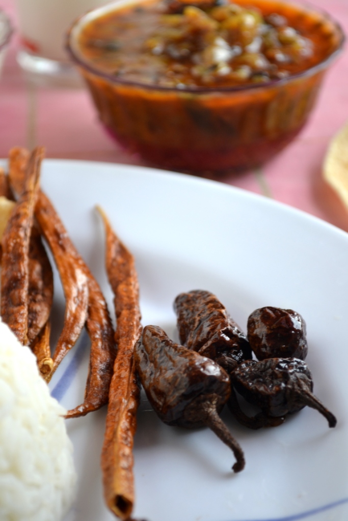 yummy meal ! kuzhambu with all the vathals looks delish !