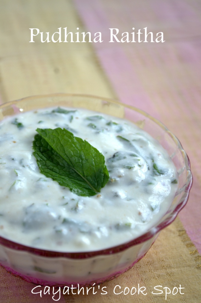Pudhina Raitha- Curd and mint leaves mixed together with spices