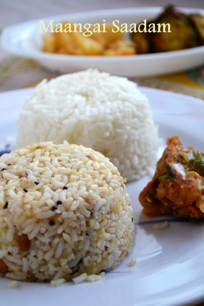 Manga saatham is my favorite in the variety rice category, right after thayir saatham ofcourse! Great lunch Thali!
